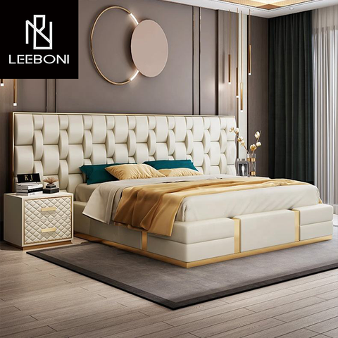 Italiano última gran oferta nuevo diseño de muebles de dormitorio de lujo de cuero de gama alta cama doble cabecero grande cama king size de lujo