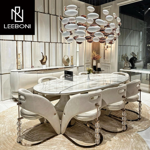 Venta caliente Fabricante Precio de fábrica Personalización Diseño de lujo Muebles de comedor Mármol Juego de mesa de comedor de gama alta